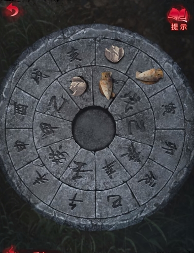 2、用【手电】照亮墓碑,获得墓碑上的文字信息。根据信息解锁八卦图,获得道具【石刀】
