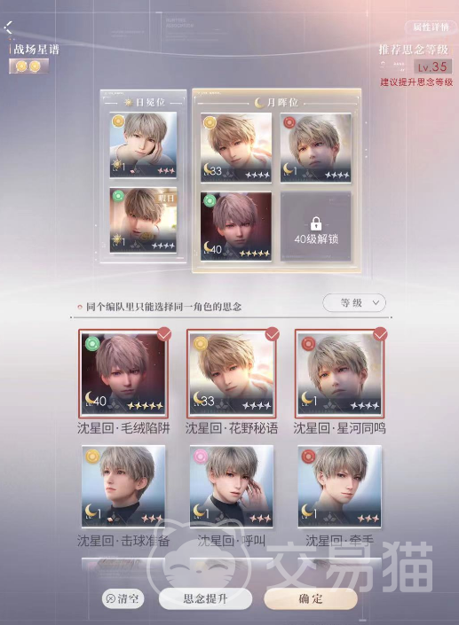 游戏内卡牌从稀有度上分为三星到五星,每一次战斗指南协同一个男主的2个日冕主卡与4个月晖副卡,达到40级即可解锁完整的卡位,部分关卡还会指定男主上场,因此玩家至少要培养三位男主各6张卡。