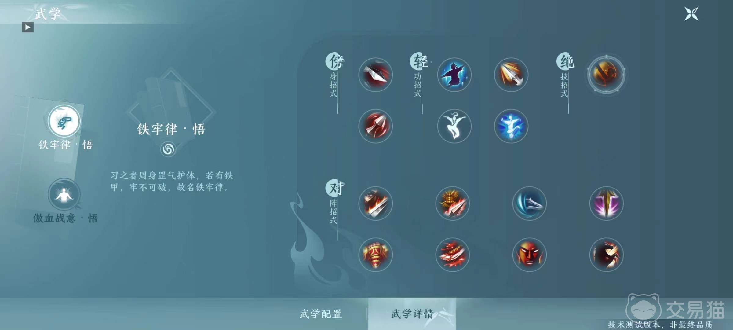 第2个铁牢律,为防御类型,切换之后就可以在副本中利用各种技能效果去吸收boss伤害,也就是大家常说的主坦。自身技能使用出来大多数都能够提高自身强度,浑身罡气犹如铁甲一般牢固不可破。尤其对外功防御方面更是出类拔萃。喜欢pvp的玩家在战场之中切换成铁牢力可以吸收对方大多数伤害,保护身后队友。