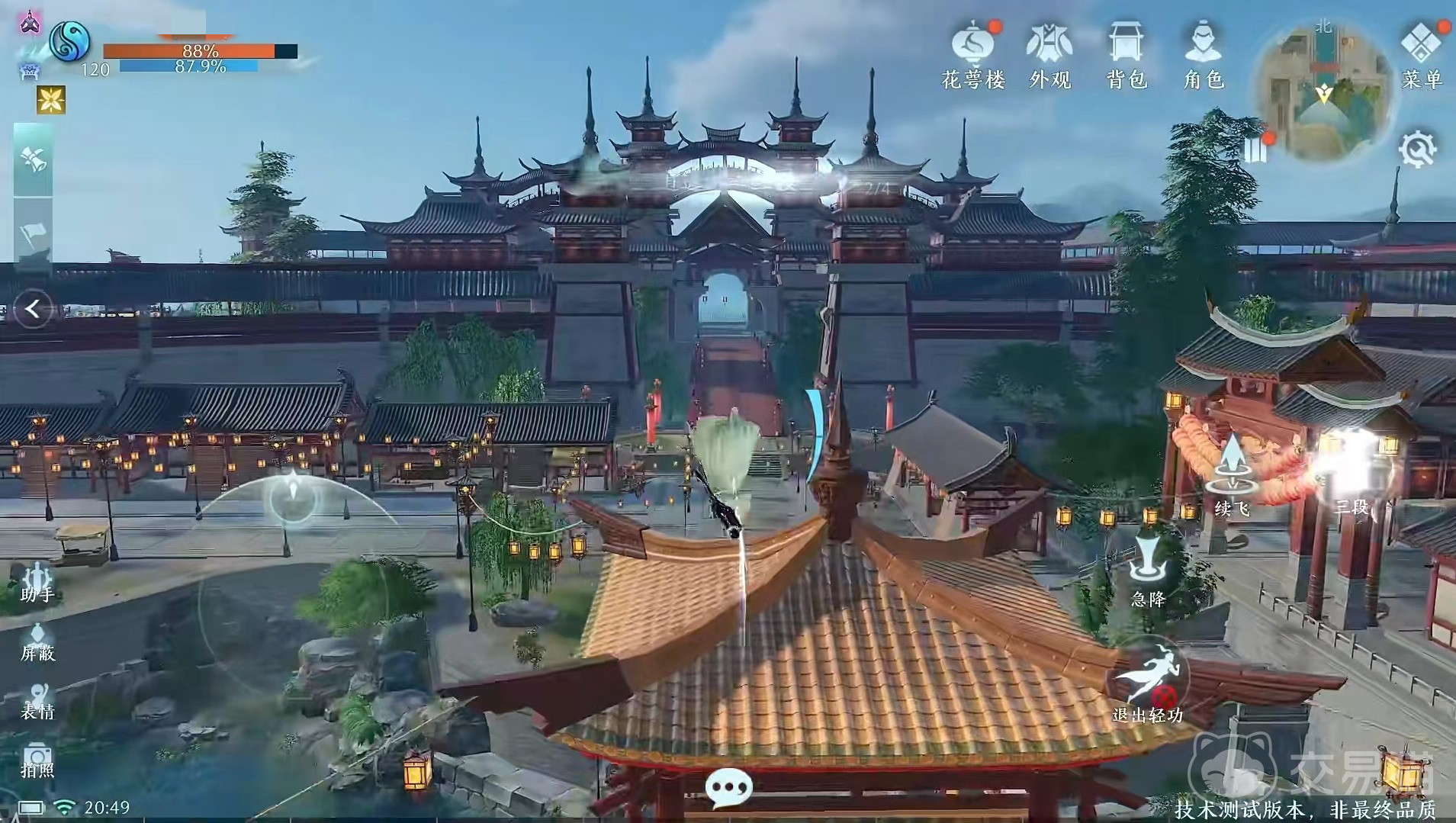 游戏中的每一个门派都有自己独特轻功,和其他技能一样充满了自身门派特点,尤其是在点击技能释放一瞬间所发散出来的特效,更是令人惊叹。玩家可以使用轻功,在半空中进行翱翔。持续释放轻功的时候会消耗气力值,当气力值清零就只能降落到地上,恢复以后才能继续使用。