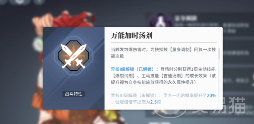 抉择技能【量身调制】的效果是从两种药剂中选择一种药剂进行炼制,强化普通攻击,指令冷却均为20秒。当强化的是【爆裂试剂】时,攻击速度提升为0.35秒每次,同时对目标造成365%蚀元素伤害,并对其半径250码范围内的敌人造成50%伤害,同时为终端附加四点蚀爆值,持续20秒。从这些技能中,玩家们不难看出,卡洛琳作为筑术师,技能组里几乎都是为自己提升伤害或是对敌方造成伤害的技能,并不具备任何辅助能力。