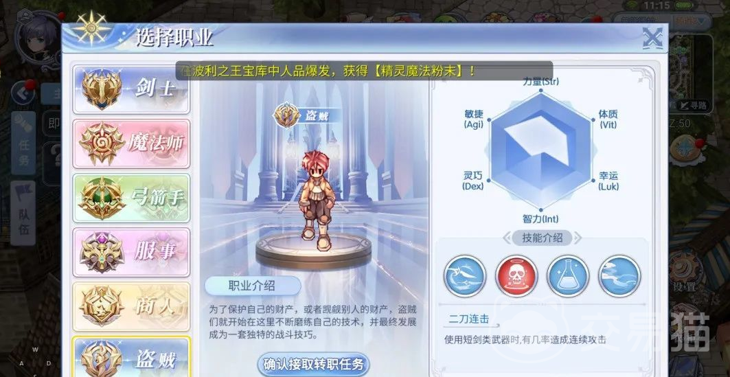 1、T0强度—盗贼:目前小编觉得盗贼算是该游戏当前版本的T0强度职业,优势是持续输出能力强,而且还是主C输出,因此在日常个人任务的时候效率也是比较高的。再有就是其前期伤害高还是比较容易度过的,到了二转转成刺客之后就开始崛起了,配合上适中的装备以及卡片胡原本打出不错的数据。基本是副本都是能跟着刷的,没有太多门开。当然由于自身的身板是比较脆的,因此自身的操作也是需要加强才行的。