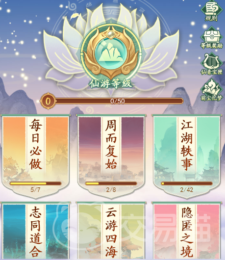 小伙伴们只要完成江湖轶事、志同道合、云游四海中的仙游任务,就可获得仙游点,玩家们在获得大量的仙游点后,就可以选择去提升这个仙游等级,从而领取更高阶的奖励!这些任务也十分的简单,通常是要求小伙伴们去参加【比武大赛】和【吆喝】;