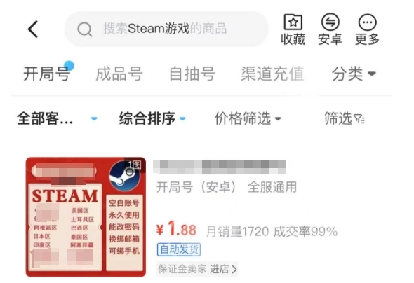 以上内容就是steam买号需要注意什么的相关介绍,在实际的游戏账号买卖中,大家想要让自己不用担心会遇到骗子,那么去选择交易猫这个平台还是很合适的,除了保障用户的利益外,也能让玩家去挑选到一个适合自己的心仪账号。