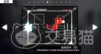其次就是拖动音符,在屏幕内会出现很多递进式的音符,这些音符会不断地下落,玩家需要使用阶梯将其一一接下来,全部接取完毕便可以获得很高的连击分数,之后就是点击音符,给玩家一个指定的方形空间,玩家的手指不能离开,在区域内将所有的红色音符点掉便可以完成演奏,难度不高,就是专注力要强一些。