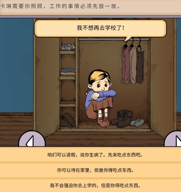 游戏的内容上就是围绕着领养的孩子展开的,从剧情初始的对生活充满期望再到中间的受伤再到最后的结局,整个故事氛围中有悲伤也有欢乐,其中最后一个章节的内容比较沉重。我的孩子生命之泉孩子抗拒怎么办,最后章节也是决定故事结局的最为关键的一章节内容,那么面对这个章节的内容,玩家们要怎么操作。