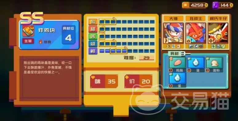 在厨师的选择上优选大锤+平村大圣+柯氏牛仔做厨师