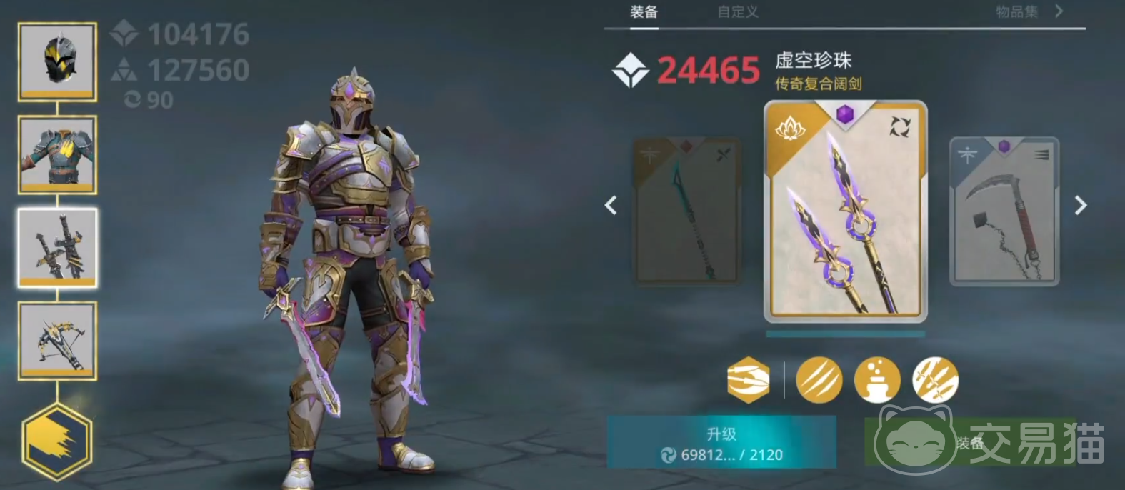 虚空珍珠:单独的复合阔剑武器,有着漂亮的荧光紫珍珠装饰,特点就是4%的暴击非常高,拥有特殊暗影技能飞天环转,但是因为没有其他伤害的加成,暴击过高反而容易断连招。