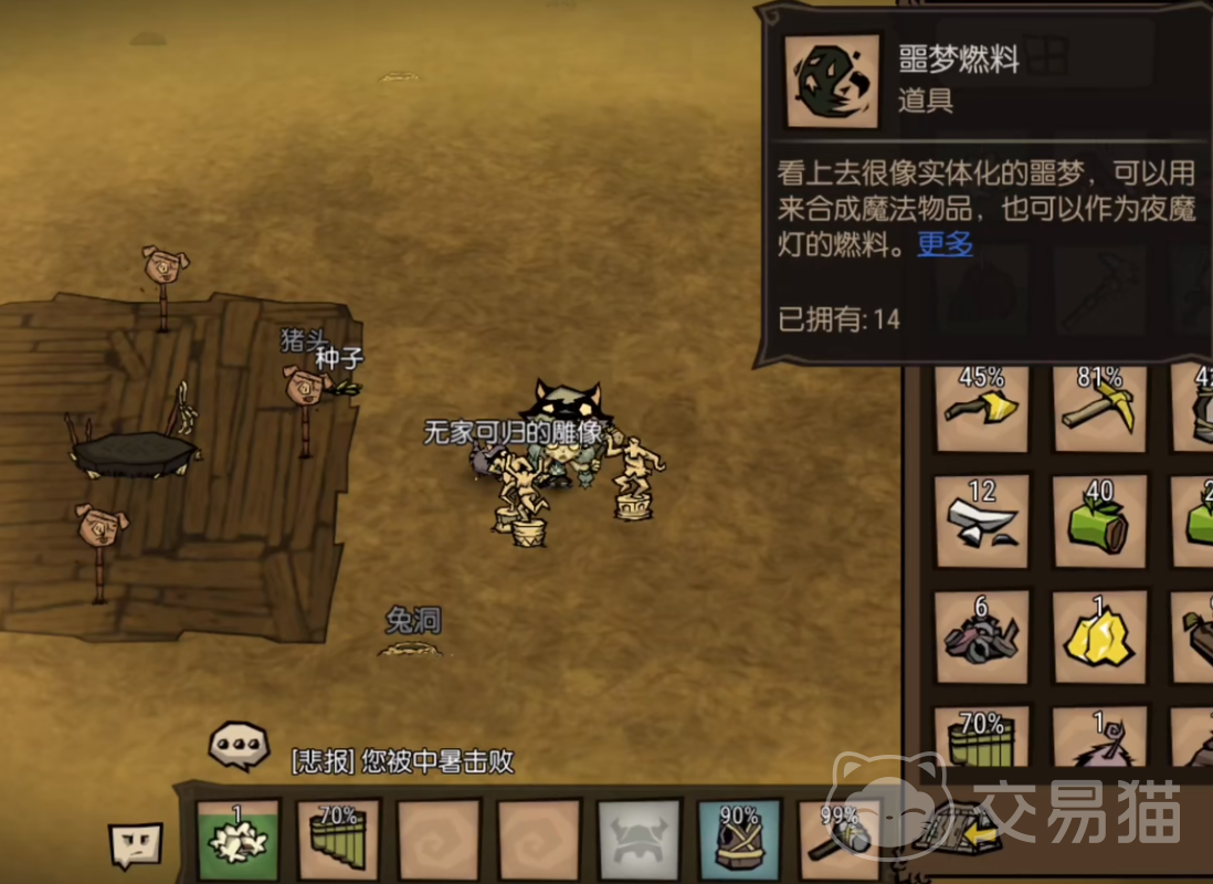 饥荒新家园中有着各式各样的材料,某些材料能够起到特定的作用,那么饥荒新家园噩梦燃料有什么用?不少宝子不太了解该物品能起到啥作用,其实燃料的作用非常多,并且是游戏中的顶级材料,需要他才可以制作不同的装备或者其他物品。接着方可增强实力,一路高歌!