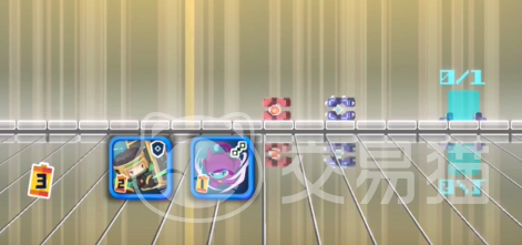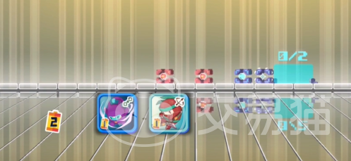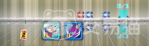再来看一下第2个场景,在这个场景中的时候,大家可以用一个盾牌兵,还可以选择一个紫猫。建议大家可以把紫猫放在左边的第1个芯片处,接下来再把右边的芯片向前面推两个。最后可以合理的运用盾牌兵,把最右边的芯片推到过关的地方即可。