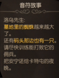 音符5:在浣猫广场的左下角,有一家杂货店,音符就在门口,但是只有在下雨天的黄昏才会出现,可以使用传送法杖增加下雨的几率。音符6:出生点的传送点左走直接去树林,会发现帐篷,而音符就在帐篷的左下方小路路径,但是只有在黄昏才会出现。音符7:在浣猫广场的上方,有一个矿场这里面需要找一个花状的脚印,顺着找就能拿到音符了。音符8:在蜘蛛占领的矿场位置附近,通过传送走进入上方森林,和音符7一样,同样是找花形状的脚印就可以得到音符。