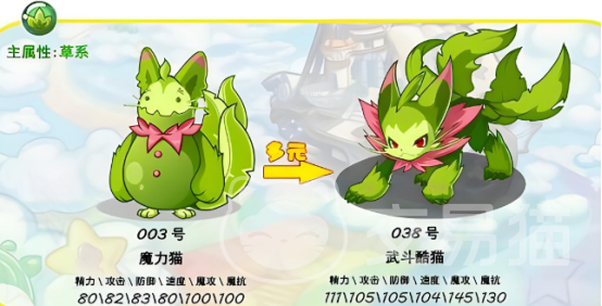 喵喵宠物作为游戏初始精灵,注册游戏之后就会赠送,在宠物园战斗有一定的概率会出现。如果宠物园没有刷到的话,那么可以到轻风山去刷,会有一定的概率出现。当达到16级时就可以进化成为喵呜,达到32级时就能进化成为魔力猫,最终成为武斗酷猫。
