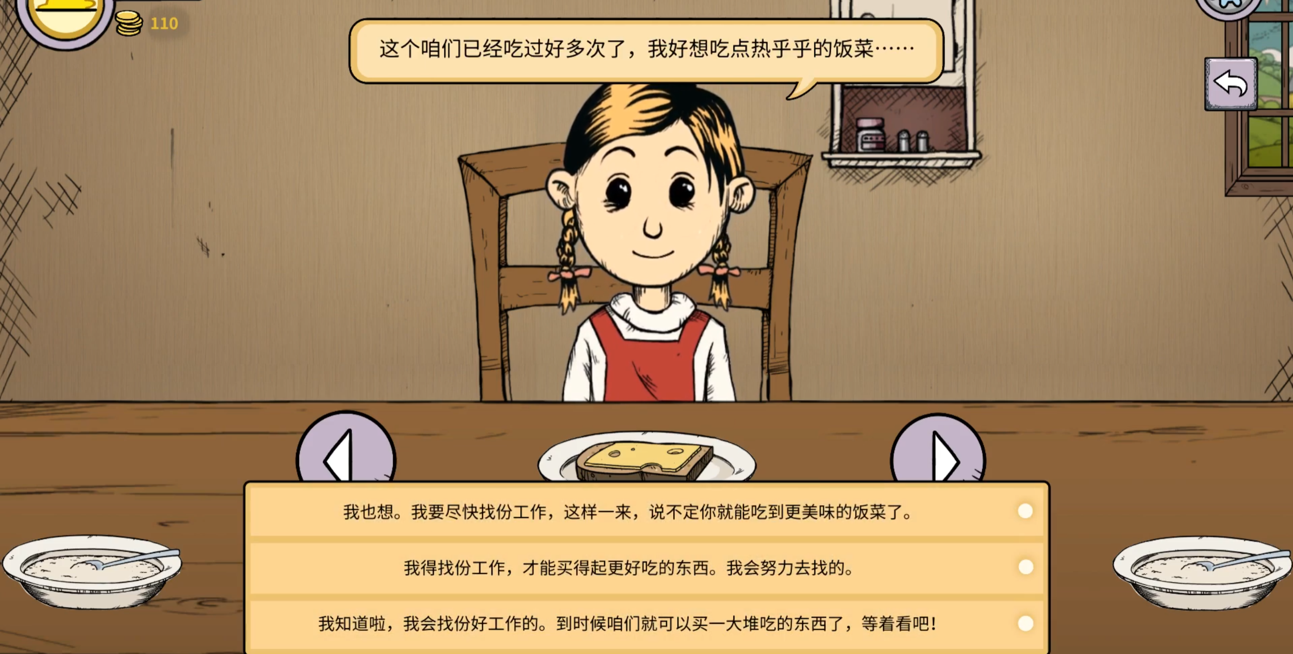 游戏的一开始大家的房间里只有面包和粥,这两种食物前期都会提供一点,随着剧情的不断推进如果不寻找其他的食物来源,那么孩子就会抱怨并且降低对玩家的信任度,这样对后面剧情的展开有很大的影响。