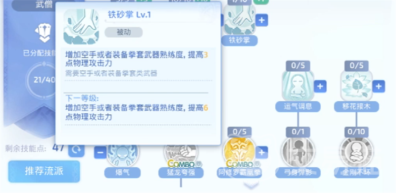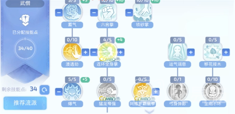 武僧的加点主要分为两种流派,一种是阿修罗流,一种是飞拳流。阿修罗流的特点是以阿修罗破坏拳为核心技能,造成巨大的单体伤害,适合打boss和pvp。飞拳流的特点是以连续魔拳和疾风魔拳为核心技能,造成持续的范围伤害,适合刷怪和团战。根据不同的流派,武僧的加点也有所不同。