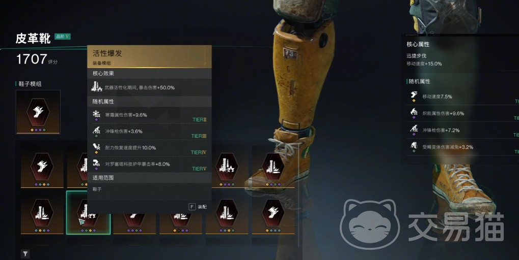 防具方面的模组,小编在裤子方面选了额外填装增加弹容量。上衣选择的是防御姿态,这个模组对大家pve很有用处。皮革靴选择的是迅捷步伐。手套加上了稳定射击的模组,猎鹰面罩小编选择的是爆破手的模组可以增加暴击率和伤害。