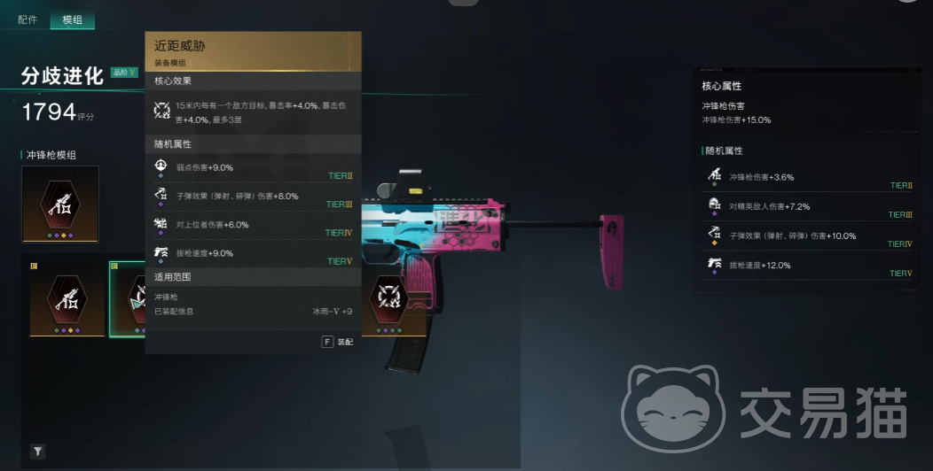 武器方面小编推荐一号武器位装备冲锋枪分歧进化,二号武器位选择一把狙击枪小编选择的是黑豹。这样的话大家无论是近身面对敌人或者远距离击杀敌人都可以有不错的表现。分歧进化是大家的主要武器,模组可以为它装上冲锋枪伤害这个模组来弥补近距离伤害的不足。