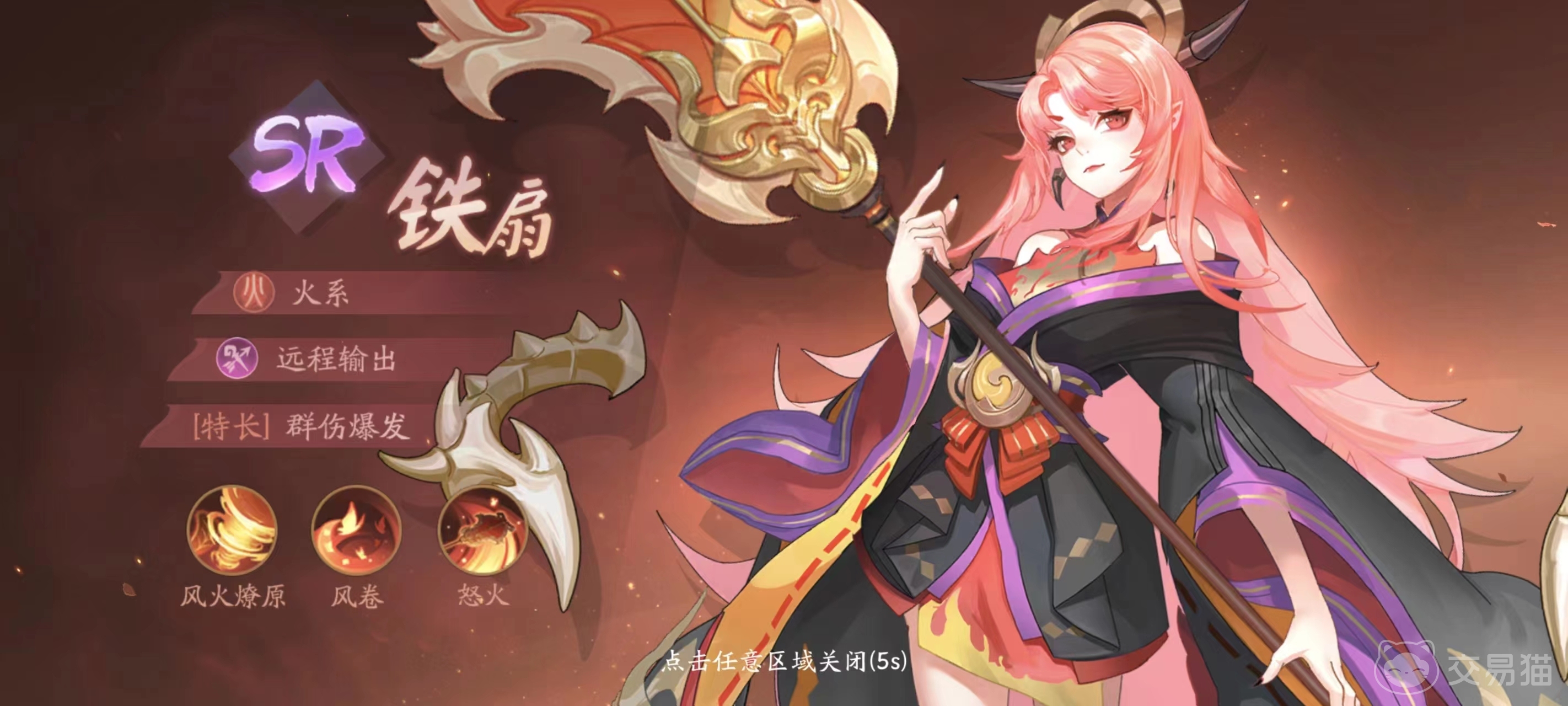 铁扇:这是火系远程输出角色,擅长一手群伤爆发,其整体输出能力非常不错,这点通过技能就可以看出,怒气技“风火燎原”可以造成高额的AOE伤害,伤害不仅基础数值给力,而且加成倍率也是达到了385%。