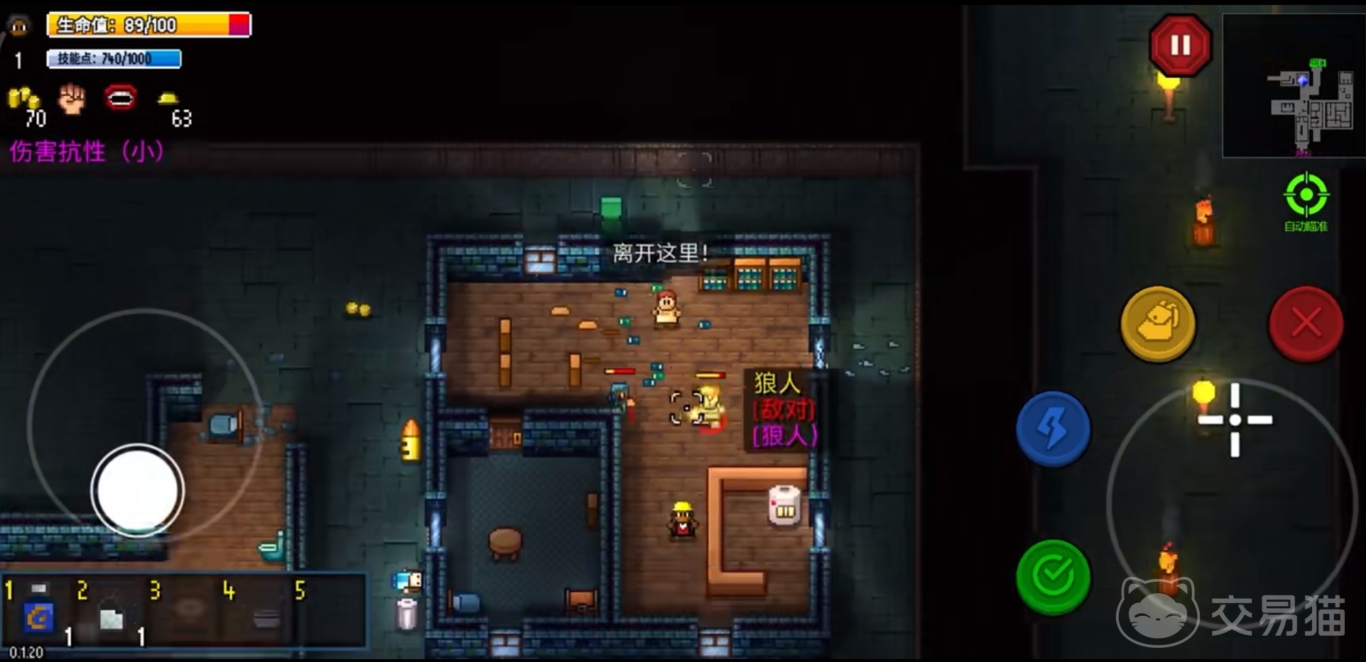 等玩家找到狼人后,狼人会与玩家处于敌视状态,此时玩家可用收集来的武器对他发动攻击,若对操作有信心的玩家也可选择空手,只要将狼人击败后,就能完成吸血鬼的解锁。