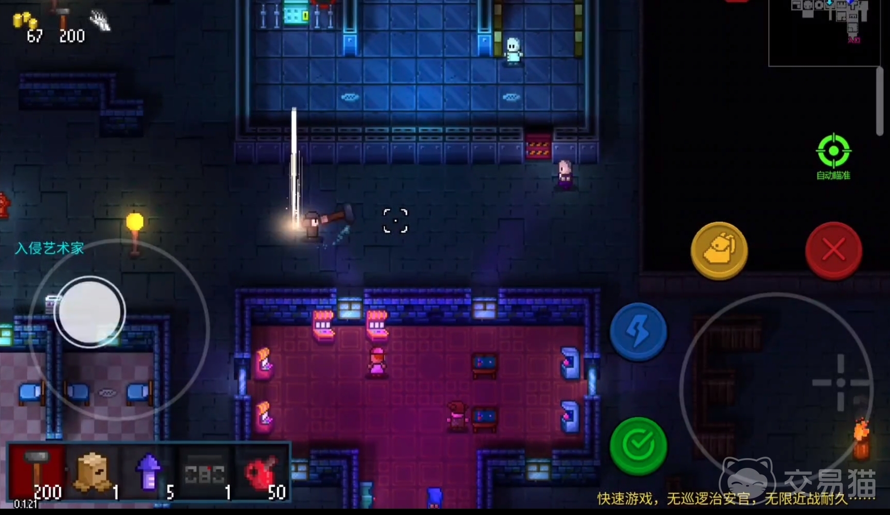 伤害能力相当夸张的近战武器,获取途径也比较多,既可从抽奖机里抽出来,也可在商店购买,甚至在开箱子时都有概率能获取。而且该武器的攻击范围很是不错,基本上玩家在拿到手后会处于一种类似近战无敌的状态,唯一需要小心的就是拿着远程武器的敌人。