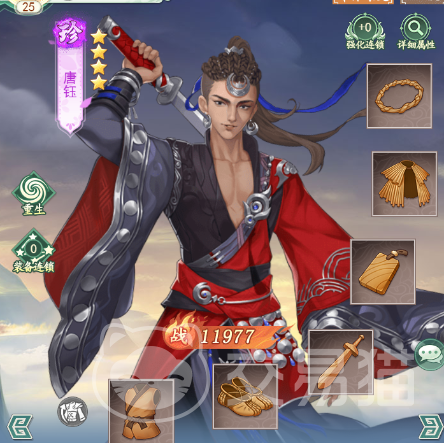 在攻击敌人时候,自身可以使用【斩击】来对敌人造成物理类伤害!搭配上【盾阵剑心】属性效果,在受到敌人攻击时,自身还会获得一个防御加成效果!通过这个效果,就可以看到出来唐钰可以作为一个半前排来进行使用!在神值满的时候,大家可以使用【飞星】,这是一个比较中规中矩的爆发类技能,可以对单个目标造成高额的伤害,但是这个技能最好是搭配上【醉仙望月步】来进行使用!在攻击敌人时候,是有概率触发一个连击效果的!
