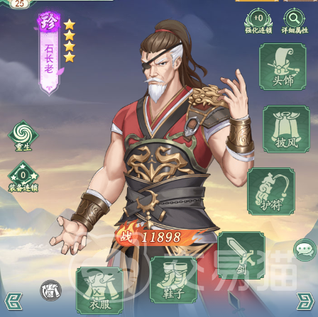 第二个要给大家推荐的是【石长老】,虽然在游戏中属于一个紫卡,但是自身的坦度非常的适合前中期去选择使用,而且也特别的好搭配阵容,石长老的建模整体看起来就是非常严肃的,在攻击敌人时,使用【火龙掌】可以对选中的敌人造成高额的固定伤害,而且还会附加一个物理伤害!搭配上属性被动效果,当受到敌人攻击时,自身的防御效果会提升,同时精力值也会提升一定数值!