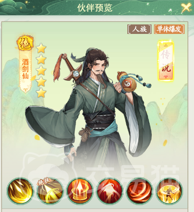 首先要给大家推荐的第一个伙伴是【酒剑仙】,这是一个在故事剧情中和游戏中,实力和颜值并存的一个伙伴,在攻击的时候,可以对单个敌人造成高额的伤害,酒剑仙的攻击大部分都属于单体攻击,非常克制一些单体伤害比较高的职业,可以直接在开局的时候,给敌人打成半血!酒剑仙的技能可以在攻击敌人后,再一次触发高额的爆发伤害,在原有的固定伤害下,随着星级的提升,可以获得技能的暴击效果!大家初期的话,可以选择优先升级【狂怒连击】,这个效果可以大大提升酒剑仙的连击概率,而且搭配上自身的暴击伤害,可以说是推荐大家去培养的一个伙伴之一了!