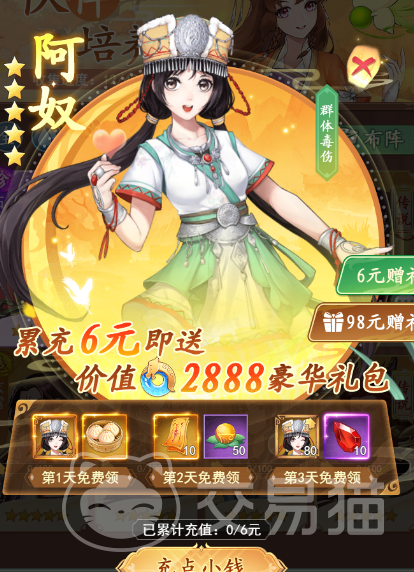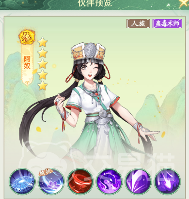 第二个要给大家推荐的是游戏中非常可爱,而且是仙剑中非常经典的一个伙伴【阿奴】!这是一个非常活泼的角色,在故事剧情中,玩家们应该都对阿奴非常的喜好吧,阿奴在实战中,伤害也不容小视,阿奴自身的定位属于仙术,在攻击敌人时,非常擅长使用负面效果来对敌人造成伤害,其主要技能【海棠毒蛊】在攻击敌人时候,除了原有的固定伤害之外,还可以随机对三到四名敌人施加一个中毒效果,这个中毒效果可厉害了,当敌人身上存在中毒效果时,会随着回合而减少精力,精力降低的敌人会没有办法释放技能!阿奴后期的话,还可以强化到7星,强化后这个中毒效果是可以持续5个回合的,而且每一个回合都会降低精力!算是一个越战越强的伙伴!