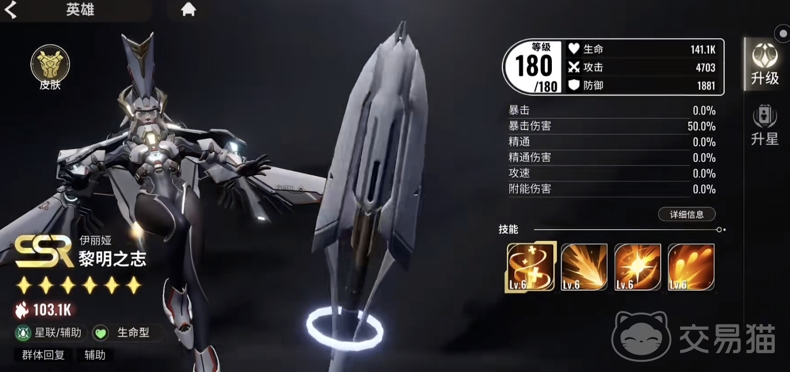 之后为大家介绍的强力英雄是伊丽娅,在游戏中的定位是名辅助。她擅长在战斗中治疗队友,并且还是群体回复,可以为多个队友进行回复。从面板来看,自身血量也很高,有一定的自保能力。