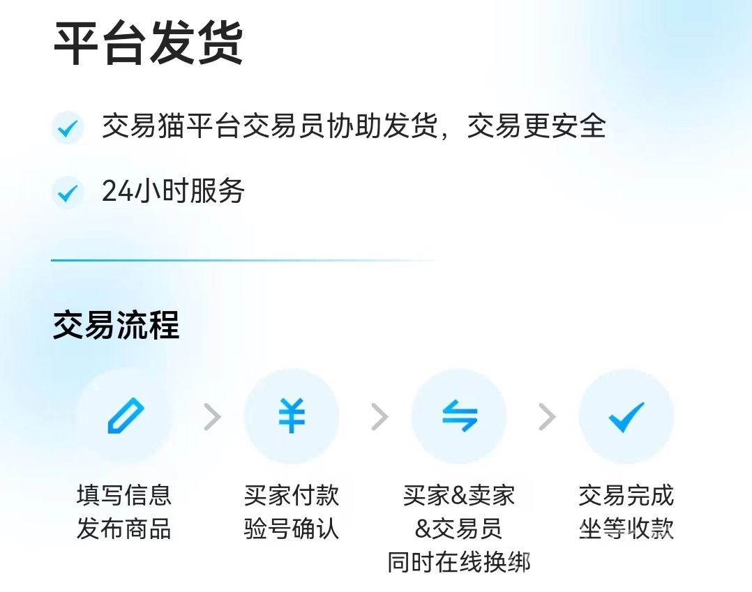 而对于买家来说呢,在交易猫购买账号经常可以享受一定程度的优惠,使得咱们用更低的价格拿到更优惠的账号。并且在交易猫买号还不用担心安全问题,平台对每一笔交易都会严格的监管,极大力度的杜绝虚假交易行为,为大家提供保障。所以大家如果对于账号交易这件事心里没有底的话就认准交易猫吧。