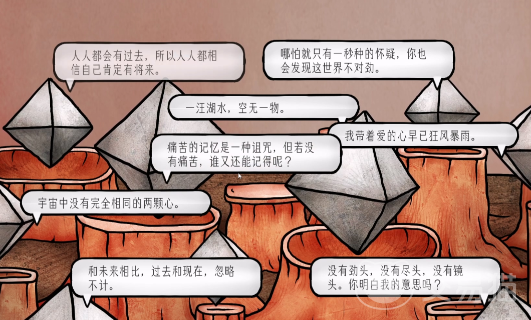 然后拿着蜣螂,会到最初始的房间,打开里面的窗户就能进入到新的空间,将鹿角安装到正确的位置便可以获得蓝色花朵,将这个道具交给穿着卫衣的男人,可以获得一张船票和一个铲子,撬动前方的房间,就会触发最后的羽毛,所有的线索以及真相都在里面。