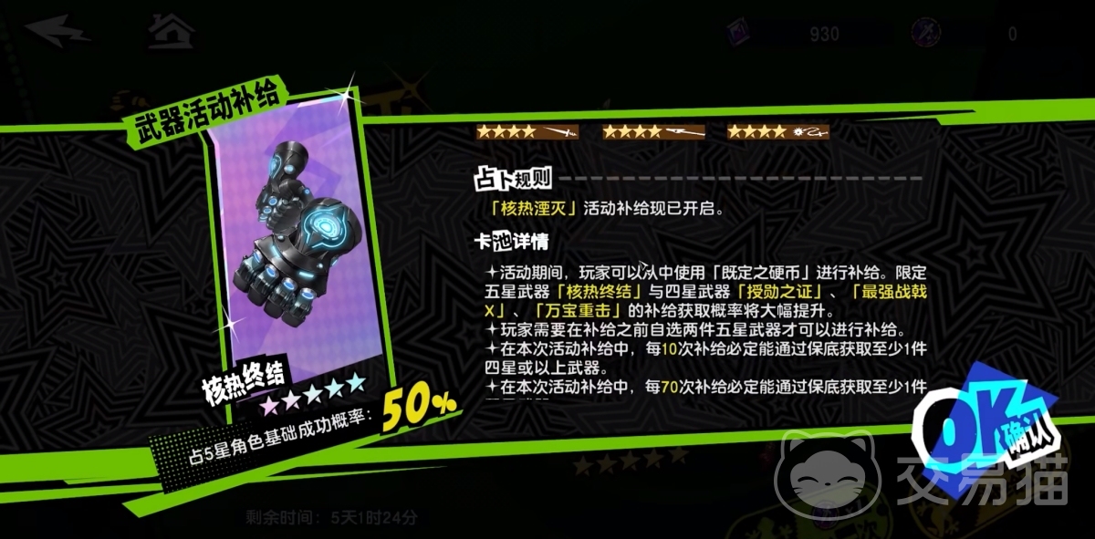 从整体上来看,抽卡可以说是女神异闻录最为主要的氪金点。要知道,游戏有着角色和武器两种不同的卡池,其中角色池有新手池、普池和限定池三种,每一种都需要150的晶珀来换取一次抽卡的机会,并且限定池有着80小保底和160大保底的机制。也就是说,要是玩家想获得当期的限定角色,最多可能要花上160抽,既24000晶珀。而武器池则是70/140抽保底,是玩家获取到角色专武的主要途径。