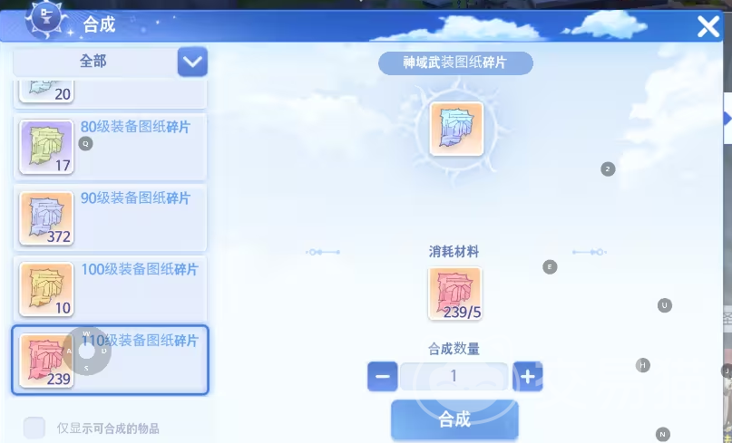 这些图纸碎片是除了可以合成装备以外,它们自身也是可以进行合成的,比如玩家需要的是60级的图纸,但现在手上只有50级的图纸。那么玩家可以将50级的图纸进行合成来获得60级的图纸。合成的比列目前是5:1,当前合成的话并没有损耗。