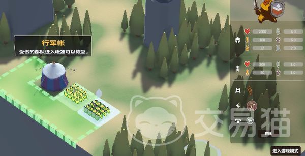 放置完成再点击一下,右侧就会出现兵种的相关信息,比如具体的属性和战斗技能等,然后再点击右下角的进入游戏模式。