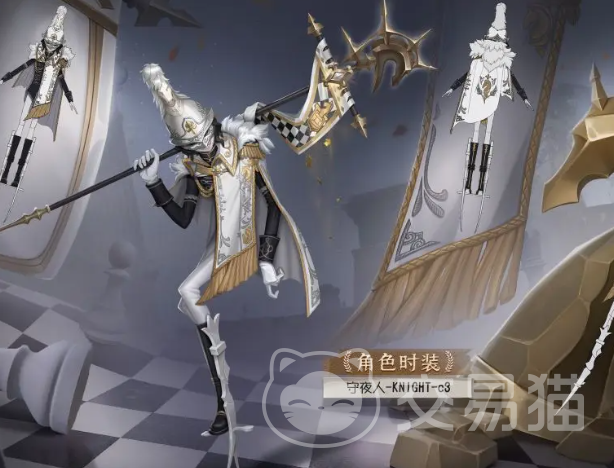 第二款是我们的监管者【守夜人-knighy-c3】这个监管者在游戏中,出场率还是非常的高的,本次的皮肤设计采用了非常独特的棋盘白棋的设定,头上可以看到一个人马图像的雕刻!而且脚踩高桥!搭配上手中的棋子镰刀,让整个角色看起来非常的高大威猛!