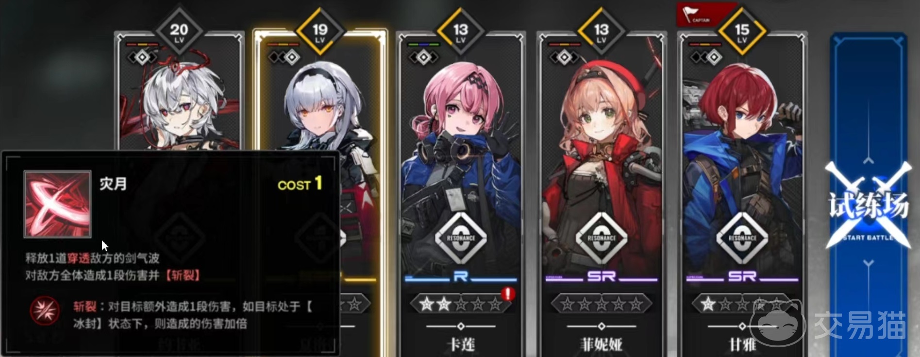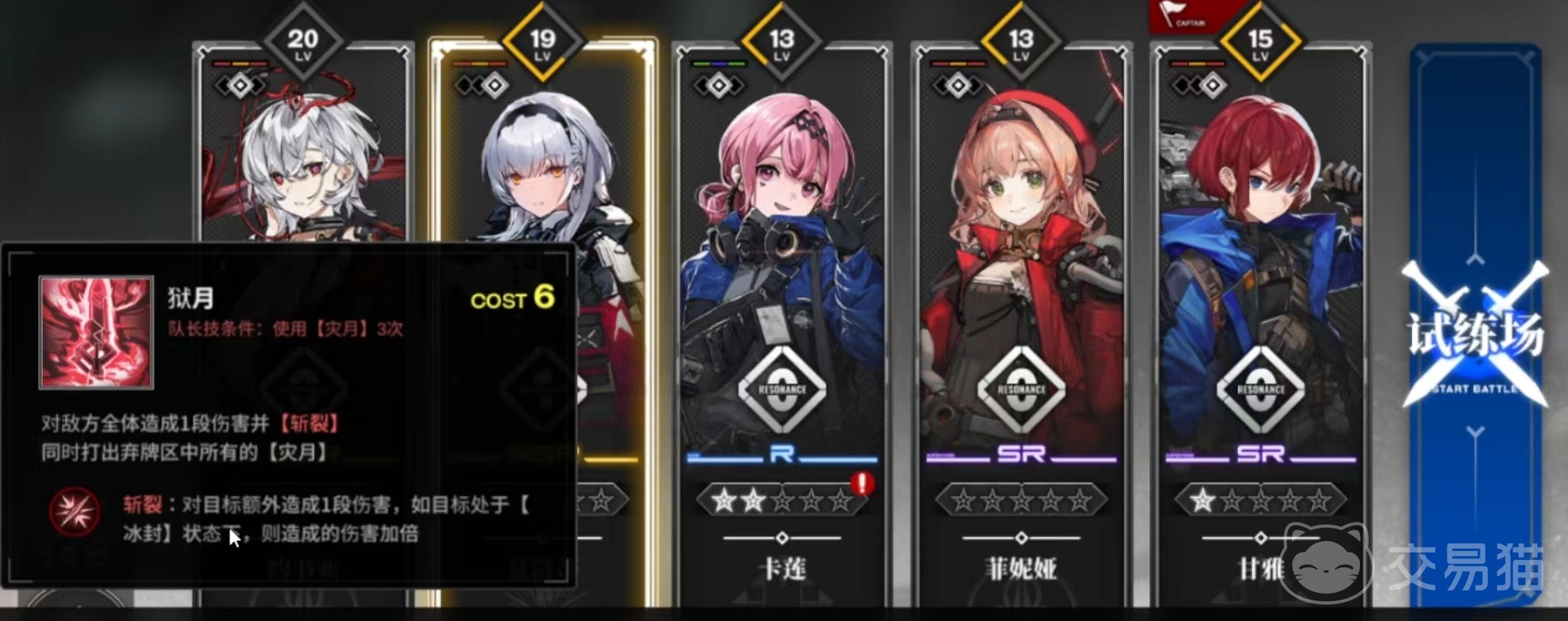 第1个技能狱月,对敌方全体造成一次伤害,并施加斩裂状态,同时将弃牌区中所有的灾月卡牌全部打出。目标被斩裂影响之后,额外受到一段伤害,如果此时处于冰封状态,则造成的伤害加倍。而这里所说的灾月指的就是夏洛特二技能效果,释放出能穿透敌方的剑气波,对敌方造成全体伤害,并且继续附加斩裂,这里所带来的效果和上一个技能是完全一样的。