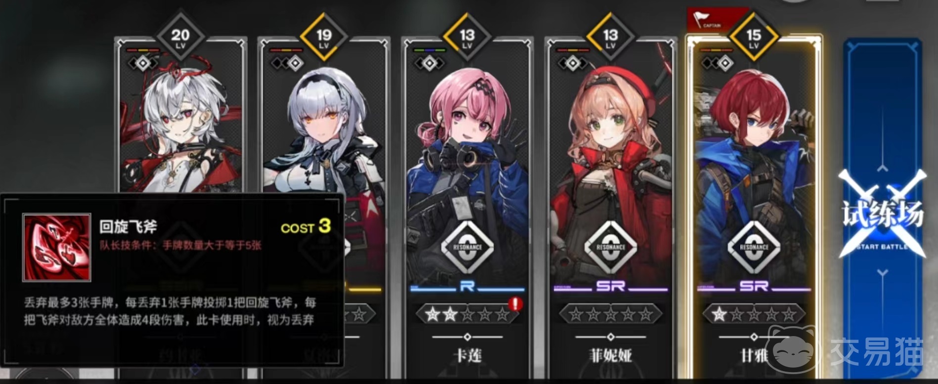还有一个技能是寂月,抽取三张牌,优先选择灾月。因为灾月是一费牌,所以大量扔出也不会心疼。这也就是夏洛蒂能够打出高额输出的原因。虽然技能比较给力,但是要想真正发挥出来,还需要有其他队友的帮助,在整个队伍搭配的时候,队长最好去选择甘雅,利用甘雅回旋飞斧技能,效果是丢弃最多三张手牌,每丢弃一张都就可以投掷出一把回旋飞斧,对敌方造成四段伤害。