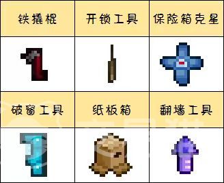 人物技能主要包括灵巧之名,外形可疑和滑不溜丢这三个,灵巧之名是可以在其他夜耗子那里获得折扣,并且其他夜耗子不会对自己下手。外形可疑是店主想让夜耗子离开,滑不溜丢使敌人难以瞄准。起始道具主要包括开锁工具,铁撬棍,破窗工具,翻墙工具,保险箱克星和纸板箱等。从这些道具的名称也可以看出,主要是针对各种保险设备,可以轻易进行开锁,这在很多地图中都有着发挥的余地。