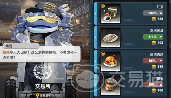 交易所:玩家还可以去交易所中购买各种自己所需要的物资,或者也可以去寻找一些比市场价低的物品进行大量购买,然后再把它拿到其他城市中买,就是低买高卖,可以去某个城市多买点当地的特产,然后再将其带到下一个城市进行售卖,这样售价会更高一些,然后玩家的收益也会变得更高,现在交易所进行购买的时候,它还会有个砍价玩法,可以在这座城市将声望提高,然后就可以砍更高的价格了,用更低的价格买到更多的物品。