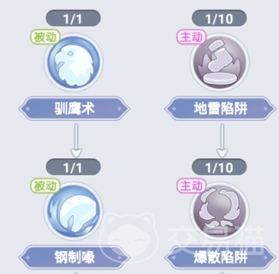 除此以外,它还能让我们玩家的视野变得更加开阔。这个技能肯定是优先需要点的。接下来需要点的是钢制橼,这个技能是增加苍鹰本身的伤害。接下来介绍的技能是动物杀手,这个技能是一个被动技,它的作用是在对付动物类型的敌人的时候,伤害会增加。其实在中后期的时候,我们所对付的敌人有不少都是野兽系的,所以这个技能可以考虑点满。