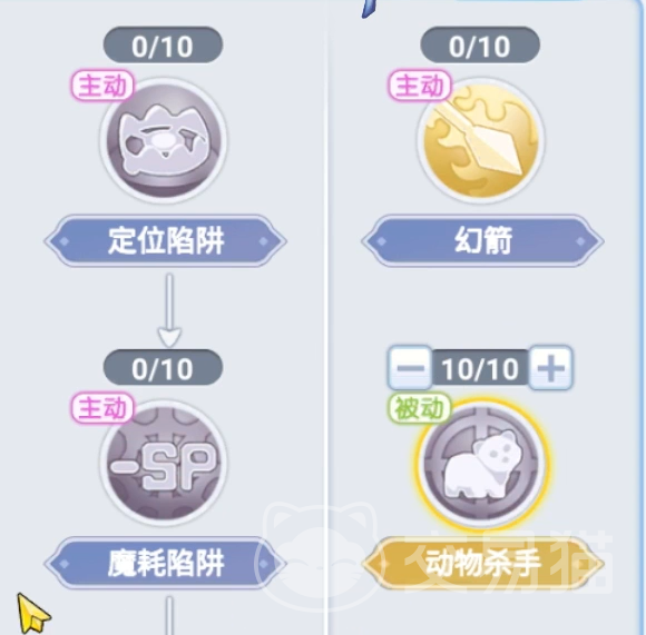 魔陷陷阱,这个陷阱在某些特殊的地方有着克制的效果,玩家们可以少点一些,以备不时之需。定位陷阱,这个陷阱同样用处不是很大,可以随意点。最后介绍的技能是幻箭,这个技能的效果还是相当不错的。建议玩家们点满。
