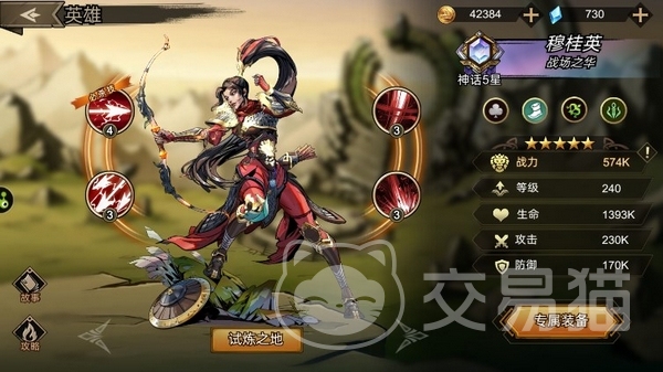 前期强烈推荐的1拖4大C,不仅能对战场有很大的影响,同时有着特别恐怖的输出。技能“刚弓连射”,3发对敌方后排的箭矢攻击,并且该技能会额外的暴击加成,并且对锁定的半血一下目标有额外攻击力加成。技能“空翻踢月”受到近战攻击的时候会将目标踢飞造成击退与伤害,升级后还附带眩晕的效果。这个技能可以有效放置敌方近战近身,为穆桂英的生存提供保障。