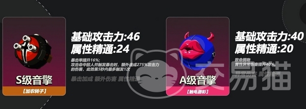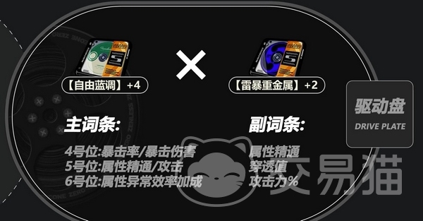 装备搭配方面自然也是以“属性异常”效果为主的,武器使用S级的音擎“加农转子”,也可以说是她的专武了,次选则是A级的“触电唇彩”。驱动盘则建议用“自由蓝调”的4件搭配“雷暴重金属”的2件,5号位上的词条优先用穿透率和精通,6号位上优先用属性异常效率加成,4号位用暴击或者攻击,而副词条则推荐以穿透、属性精通为主要属性。
