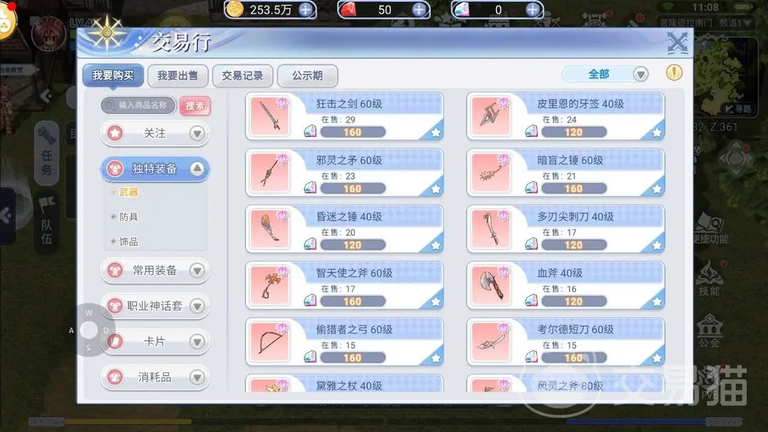 这个时候大家的主界面的上方会有出现一个“交易行”的新按钮了,点击就可以进入到交易行当中,交易行的进入和打开方式还是比较简单的。而且这个功能及时在角色身处野外的时候也是可以打开的,可以在挂机的时候将装备在交易行当中上架,随时随地都是可以去赚通用货币的,这里能够拿到的通用货币主要是彩钻。