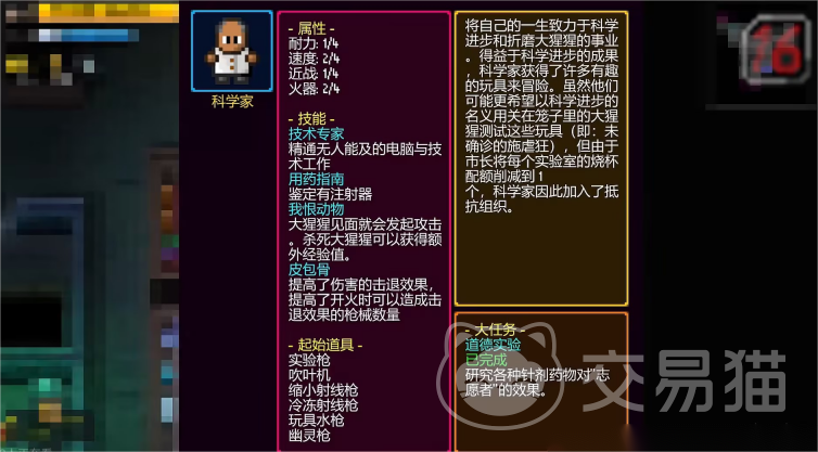 第二个是这个秃头老人科学家,拥有超多的起始武器,但是对于后坐力大的武器使用起来会非常的吃力,是一个非常不错的前期角色,用来解锁其他的角色非常的有用。