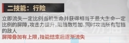 二技能则可以扣除自己一部分血量并获得一个护盾,同时还能提升攻击和阻挡数,并且之后会攻击所有阻挡的敌人!