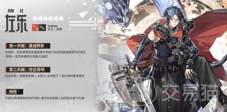 很多朋友问明日方舟左乐是谁,左乐其实是游戏中一个新出的六星角色,本身需要从限定卡池中抽取,一些朋友可能还不清楚他的天赋技能,所以下面小编就一起来介绍一下,他本身是一个伤害很炸裂的近卫武者,有想法入手的话一定要来了解一下,这能让你提前获悉他的技能。
