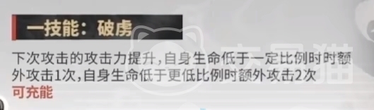 一技能的话则会强化下次普攻,以此获得额外攻击力提升,血量低于一定比例,还能令下次攻击时额外再攻击一次,低于更低比例时则变为额外攻击两次。