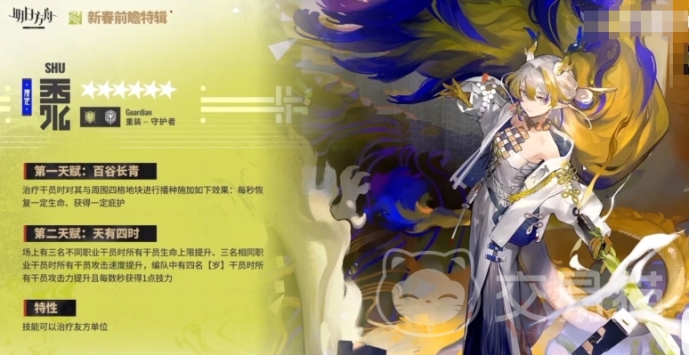 今天介绍一下明日方舟黍是谁,黍是即将在新版本推出的一个限定六星角色,很多玩家都对她十分感兴趣,所以接下来小编就全面的介绍下这个角色,包括她的天赋,特性和技能都会进行提及,感兴趣的朋友可以过来看看,这能够让你提前对她建立了解,从而更好的判断是否入手她!