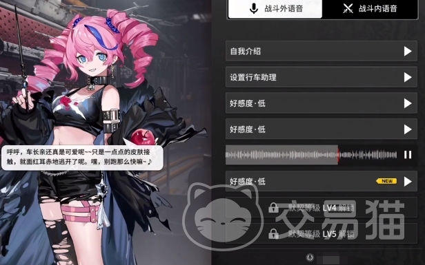 除了战斗外有语音,战斗内也是有语音的,不过相比较而言高亲密度后解锁的战斗内语音会少一些,然后除了角色有好感度,宠物也是有好感度的,增加它们的好感度,它们会在属性和交互动作上有更好更丰富的表现。