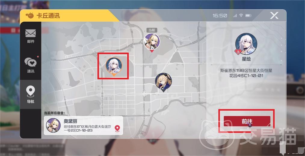 卡拉彼丘如何换角色方法介绍,首先玩家要找到游戏右上角的卡球通讯选项,点击进入之后可以看到有邮件、通讯以及导航三个选项,点击导航之后,可以看到对话框里出现的一幅地图,在地图中会出现角色头像,玩家刷新出自己心仪角色,然后点击角色头像进入之后选择切换宿舍就可以更换角色了。以上就是换角色的方法,大家赶紧行动起来换上吧。